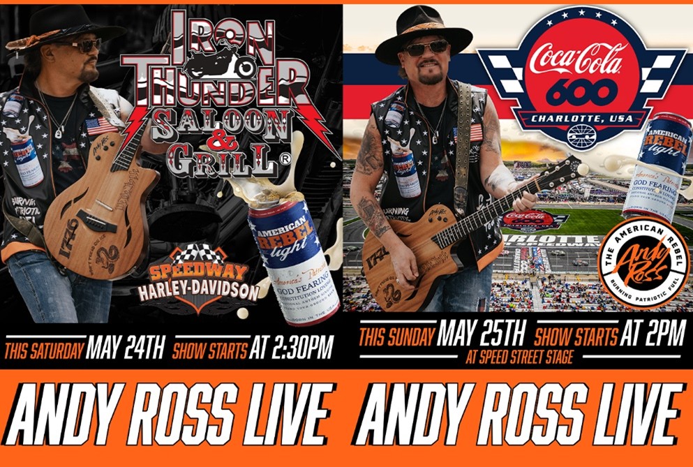 Three Days of Music, Racing, Patriotism and American Rebel Light Beer – Andy Ross will Perform for Thousands at Charlotte Motor Speedway’s THOR Camper Appreciation Party, Iron Thunder Saloon/Speedway Harley-Davidson, and BetMGM Speed Street Stage