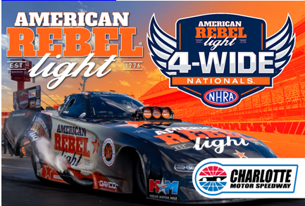 “American Rebel is honored to be named entitlement sponsor for the American Rebel Light NHRA 4-Wide Nationals at zMAX Dragway on the Charlotte Motor Speedway property,” said American Rebel CEO Andy Ross. “It’s also an honor to be the entitlement sponsor for the 1,000th Top Fuel event and celebrate that milestone with the NHRA. We’ve been sponsoring Tony Stewart Racing and the Matt Hagan Funny Car for three seasons now and the relationship with Tony, Leah, Matt and everyone in the wider NHRA family has been extraordinary. Our racing marketing program has opened many doors and helped establish numerous critical associations that have advanced American Rebel Beer. Being the title sponsor at Charlotte Motor Speedway will roll out American Rebel Beer in North Carolina in a big way. The only thing better than a weekend at the track and celebrating in victory lane with a cold Rebel Light is bringing the party. I’ll be performing a concert on the midway at the track between Nitro Qualifying Sessions #3 & #4.”